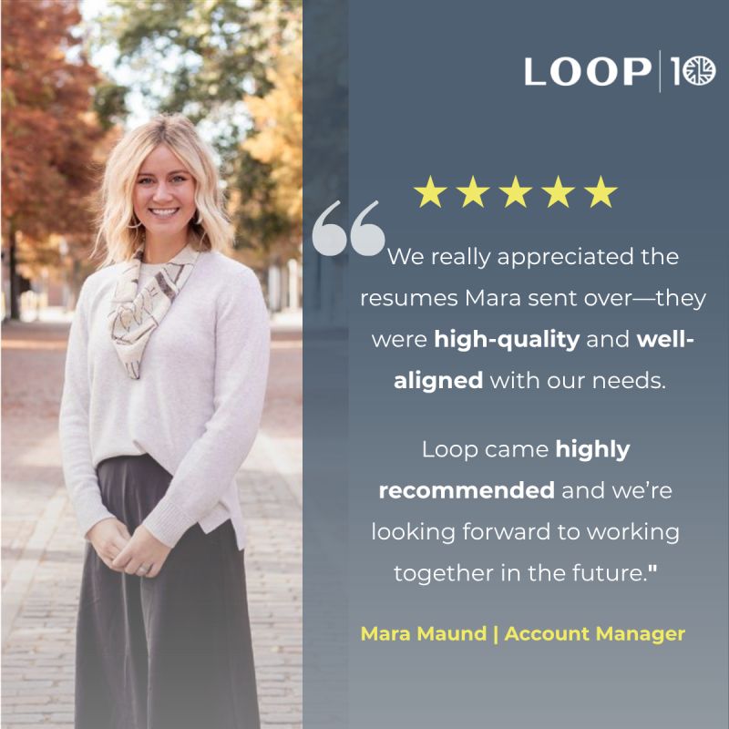 If I had to boil Loop down to one word, it would be experience. No matter how complex our hiring needs are, Loop provides strategy and execution that works. They are a great partner for building a strong team.Â